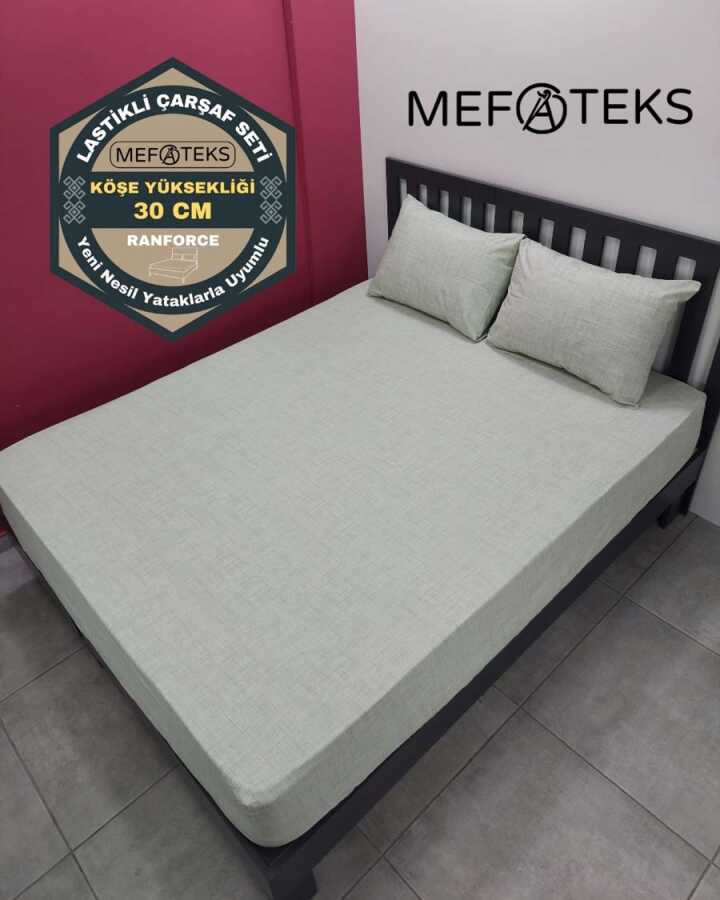 Açık Yeşil Lastikli Çarşaf Seti Çift Kişilik | Komple Lastikli Solmaya Dayanıklı Yüksek Derinlik