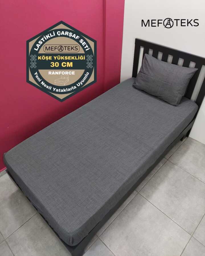 Antrasit Lastikli Çarşaf Seti Tek Kişilik | Kaymaz Solmaya Dayanıklı