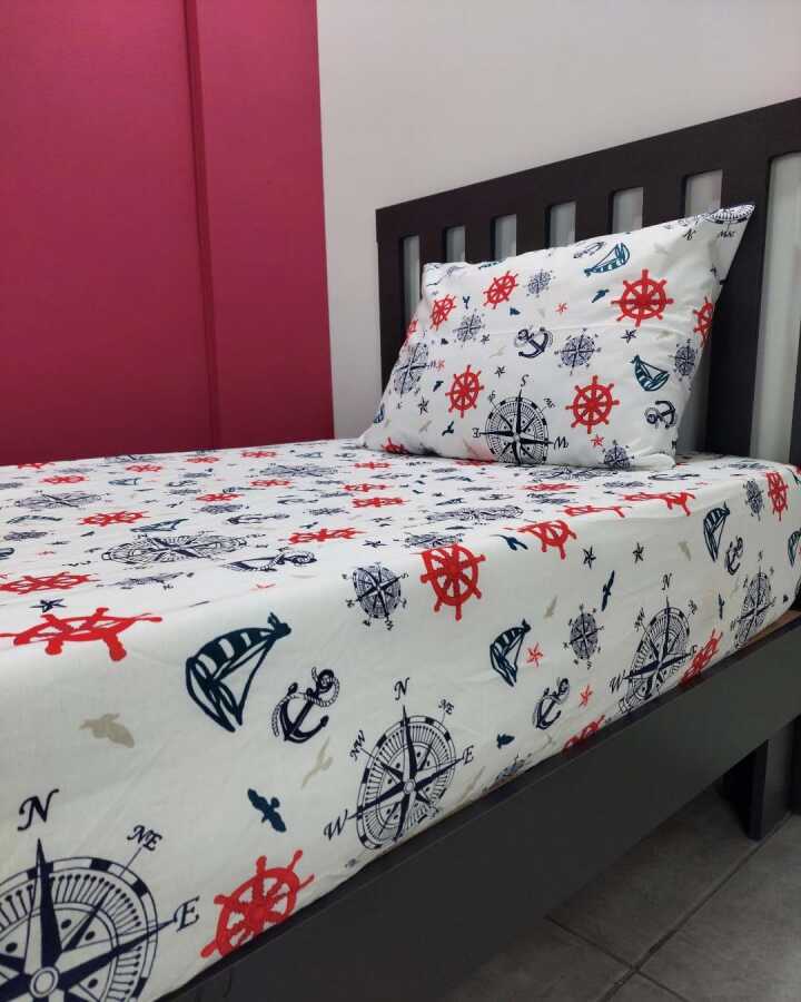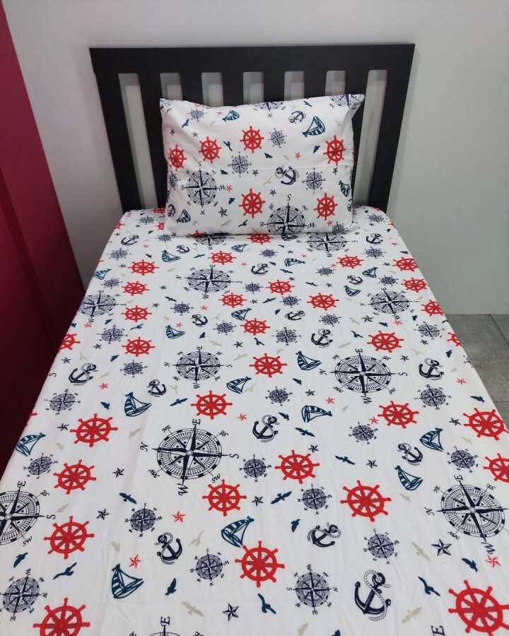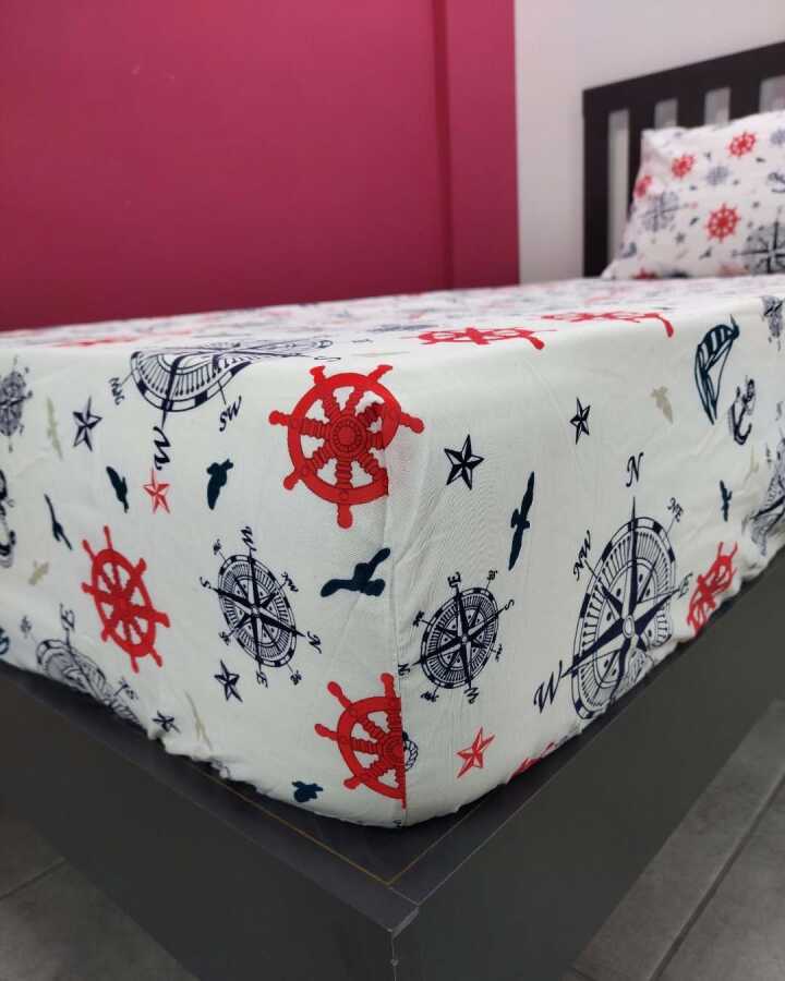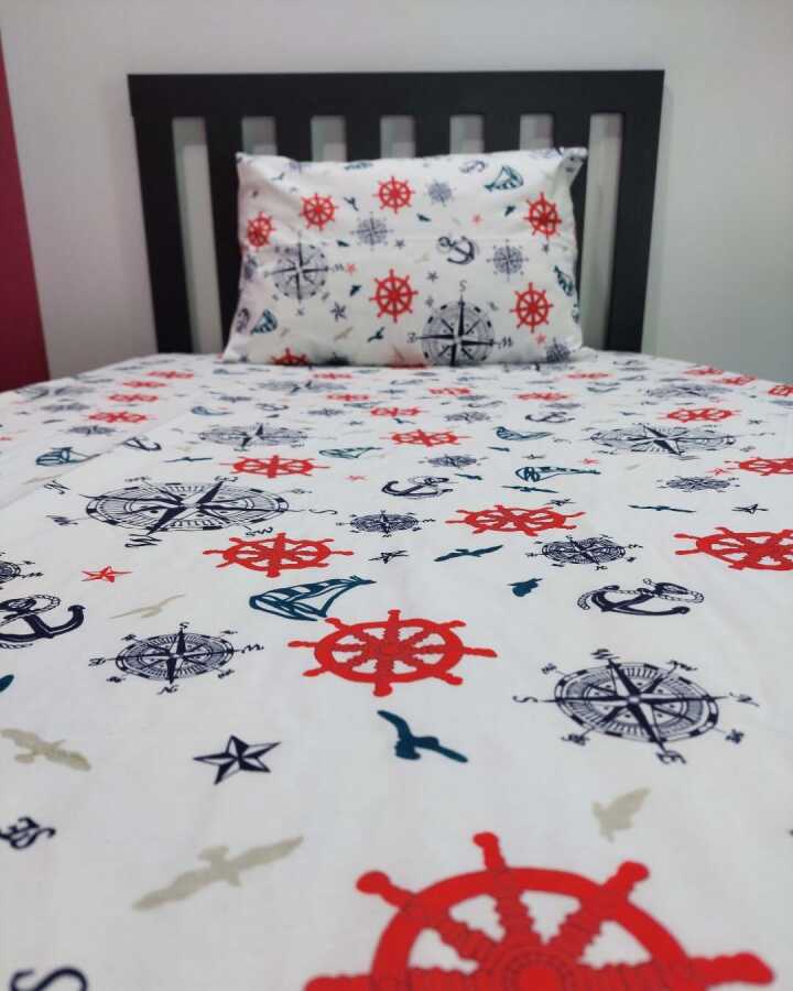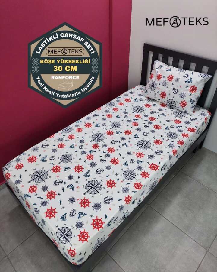 Denizci Baskılı Lastikli Çarşaf Seti Tek Kişilik | Kaymaz, Solmaya Dayanıklı