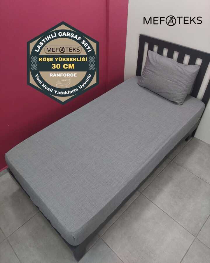 Gri Fırça Lastikli Çarşaf Seti Tek Kişilik | Kaymaz Solmaya Dayanıklı
