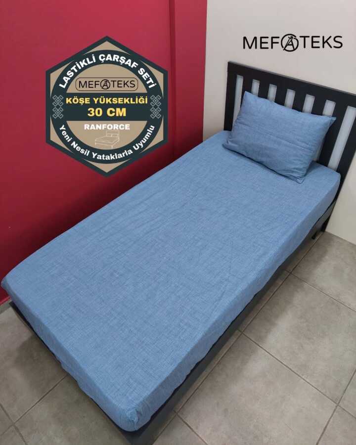 İndigo Mavi Lastikli Çarşaf Seti Tek Kişilik | Kaymaz Solmaya Dayanıklı