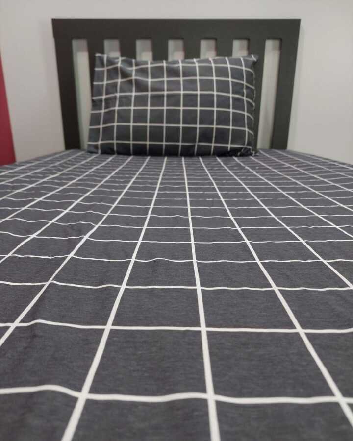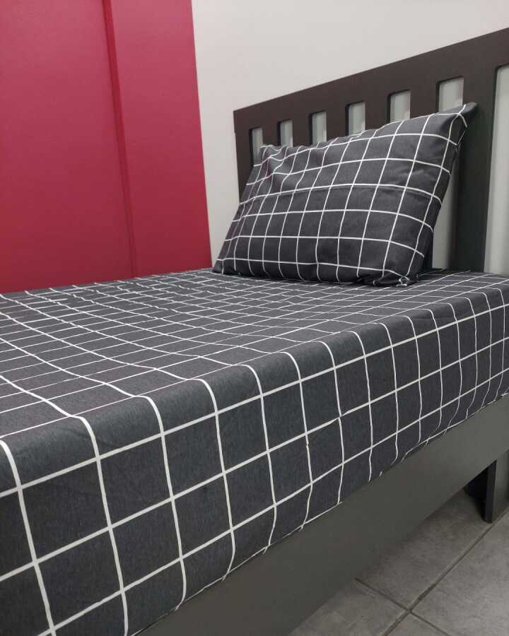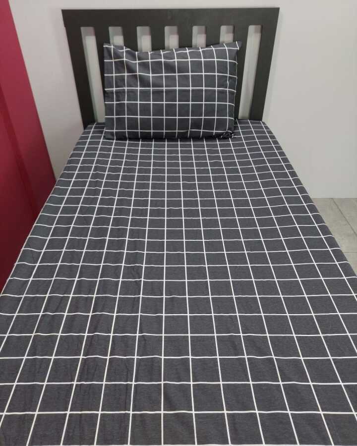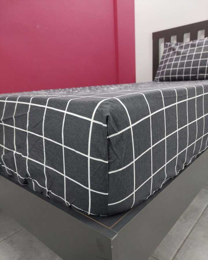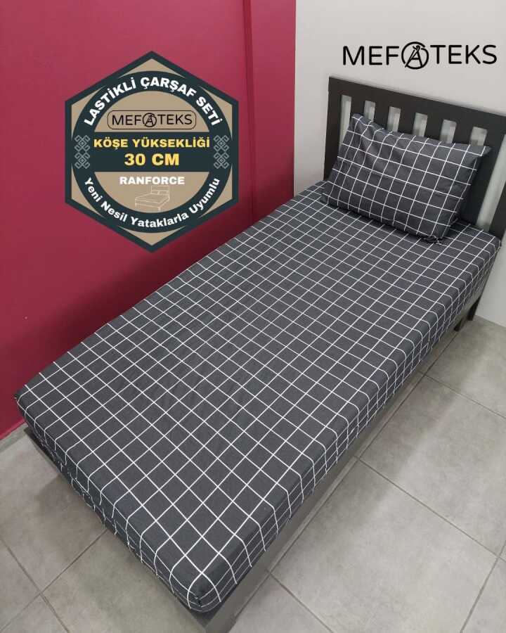 Kareli Siyah Lastikli Çarşaf Seti Tek Kişilik | Kaymaz, Solmaya Dayanıklı