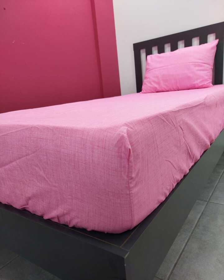 Pembe Fırça Desen Lastikli Çarşaf Seti Tek Kişilik | Kaymaz, Solmaya Dayanıklı